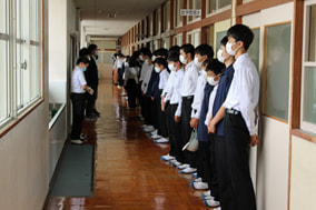 掃除の時間帯に避難訓練を行いました。掃除の前の黙想をしている時に緊急地震速報が鳴りました。