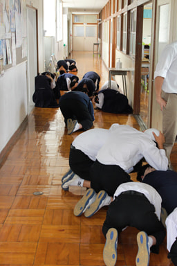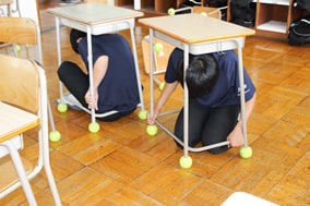 廊下で体を守る態勢をとったり、教室の机の下に潜ったりして、安全を守る行動がとれていました。