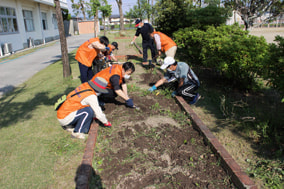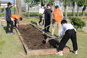 学校地域支援本部の皆さんと一緒にフラワーボランティアを行いました。花壇の整備ができました。参加いただきありがとうございます。