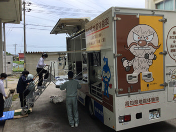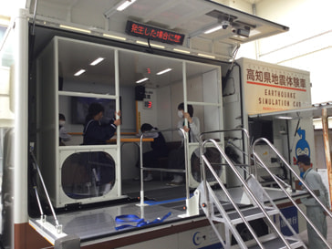 起震車体験を行いました。南海トラフ地震を想定した、100秒(最大震度7)の揺れを体験しました。