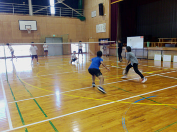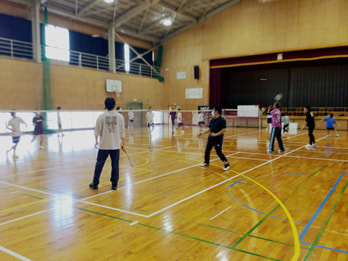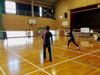 3年生の体育の授業でした。バトミントンで教員との対戦を行なっています。