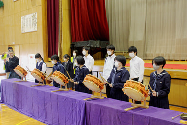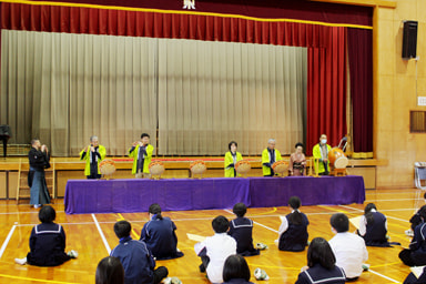 「鼓と笛」の演奏会(音楽鑑賞・体験)(全学年)(2022.11.24)