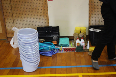自主防災組織の方と連携し、災害時に中学生も避難所での役割を担えるよう避難所開設訓練(発電・仮設トイレ設営)も行いました。