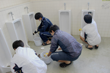 「高知掃除に学ぶ会」の皆さんにご協力いただき、トイレ掃除ボランティアを行いました。1時間30分の活動でしたが、時間を忘れてトイレをきれいにしていました。掃除のコツ等を交えて、掃除の仕方を学ぶこともできました。「感謝・感動・気づき」の3つの心を学ぶことができるトイレ掃除になったと思います。