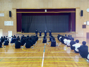 始業式で校長の新年の挨拶の後、生徒集会を行い、生徒会から1月の目標や活動について報告がありました。