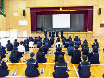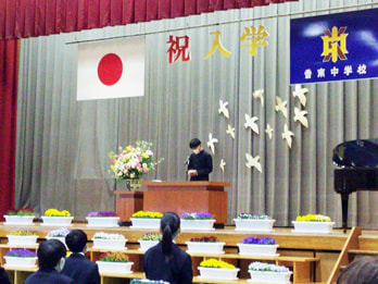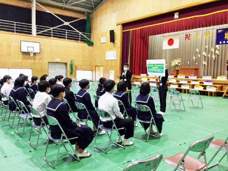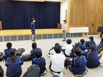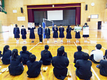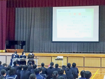 生徒会から、中学校生活の紹介と、生徒会の各種委員会の紹介、4月の目標の説明がありました。
