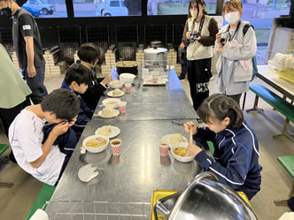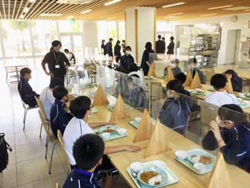 1年生も素早く、給食の準備や後片付けができるようになっています。美味しそうに給食を食べていました。