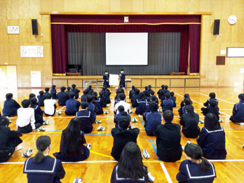 南国警察署の方から、交通安全や日常の危険回避について話を聞きました。学んだことを活かして、ヘルメットを被り、交通ルールを守って安全に自転車を乗るようにしていきましょう。