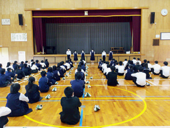 生徒会から、中学校生活の紹介と、生徒会の各種委員会の紹介、5月の目標の説明がありました。