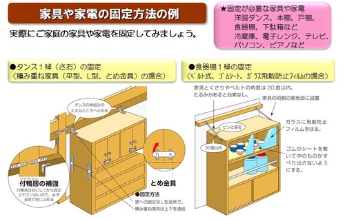 ・家具転倒防止 金具等により家具を床や壁、柱に固定するなど |