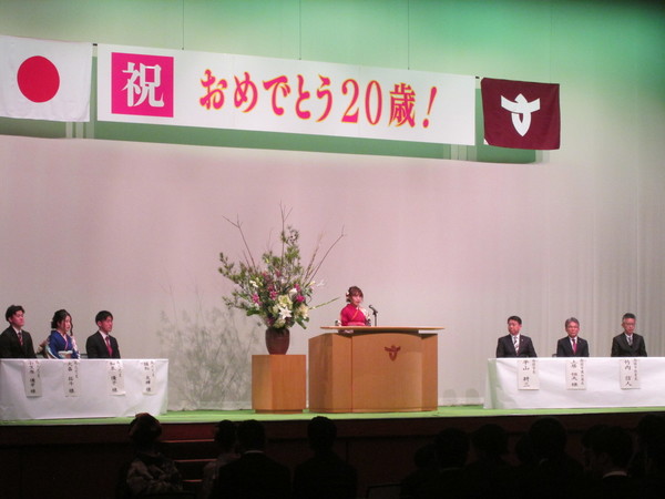 ここにお集まりの皆さんは、すでに社会人であったり、学業に励んでいたりとその状況は様々であると思いますが、20歳になられたことを契機に、大人としての権利と義務が生じることとなりました。これからは、その義務を果たしながら、自らの判断と責任で、確かな一歩を積み重ねていただきたいと思います。