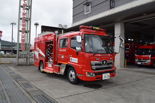 南国市消防本部は緊急消防援助隊設備整備補助金を活用し、新たに災害対応特殊水槽付消防ポンプ車を整備しました。