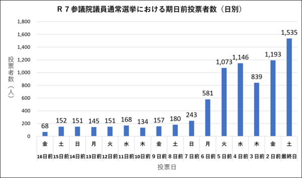 ※市議会議員選挙の場合は期日4日前の水曜日頃から来場者が増える傾向にあります。