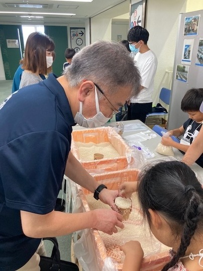 - - 8/14子ども会農園にんにくの詰め放題とお米のすくい取り販売(市役所2階ロビー)