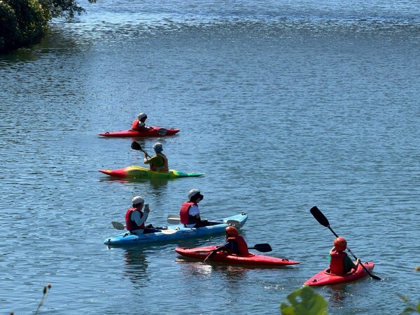 南国市子ども会連合会カヌー教室が国分川・比江先憩いの広場で行われました。今年も仁淀川でカヌー教室をされているインストラクターの先生に指導を受けながらカヌーに挑戦しました。初めてカヌーに乗る子どもは最初戸惑って上手く前へ進まないこともありましたが、すぐに慣れるとパドルを操りカヌーを楽しんでいました。
