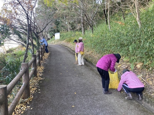 福祉教育・ボランティアDAY等検討会が主催する岡豊城跡の遊歩道の清掃作業に更生保護女性会岡豊地区会員が参加しました。南国市更生保護女性会では、子育て支援活動の一環として毎年保育所・園で花植えを行ったり、地域の活動に参加しています。