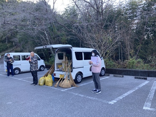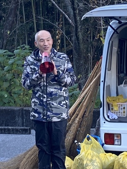 今年度は希望が丘学園の生徒さんと先生方・歴史民俗資料館の方々・社会福祉協議会の方々と総勢50名程で作業を行いました。寒い風が吹く中の作業でしたが、落ち葉を掃き集めて遊歩道はきれいになりました。作業が終わった後は、社会福祉協議会の丹生谷課長さんから参加者へ御礼のあいさつがありました。