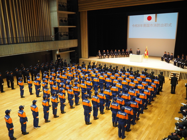 令和8年1月11日(日)に南国市地域交流センターMIARE!において、消防関係者の仕事始めの行事である令和8年南国市消防出初式が行われました。