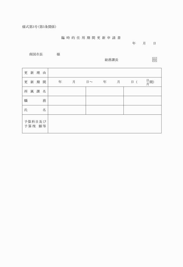 3 市長は,前項の申請書を審査し,臨時的任用期間を更新する必要があると判定したときは,当該所属長に対し通知書を交付しなければならない。