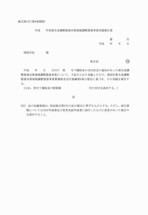 ○南国市新生産調整推進対策地域調整推進事業費補助金交付要綱