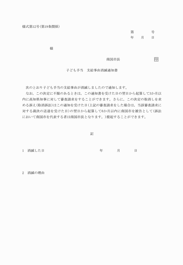 ○南国市子ども手当事務取扱規則
