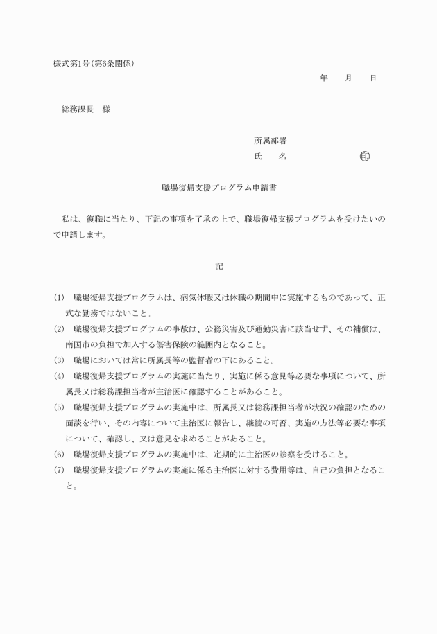 ○南国市職員の職場復帰支援プログラム実施要綱